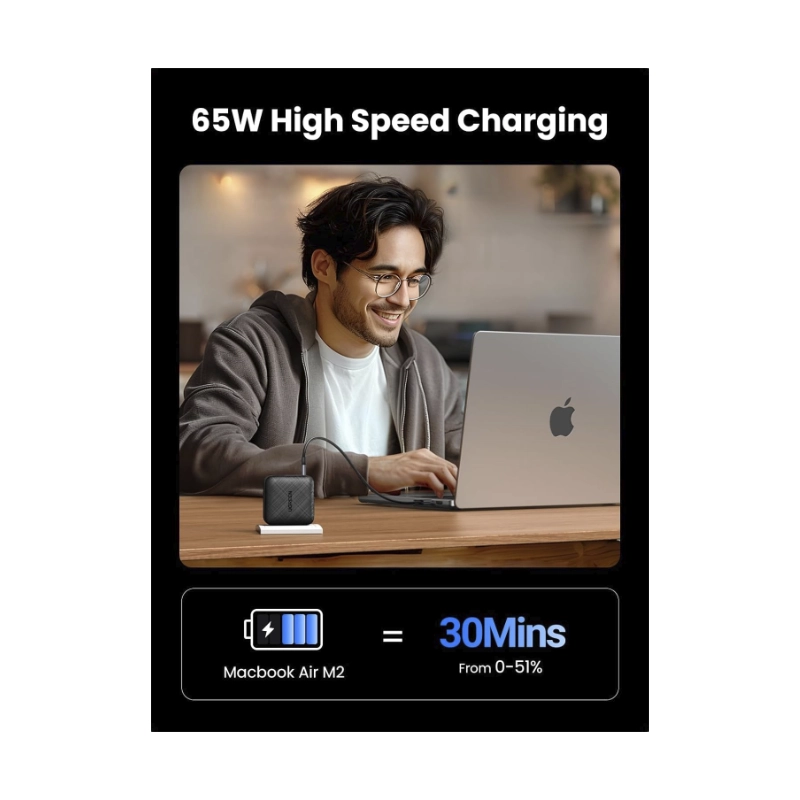 Cargador De Pared Ugreen Cd224 (70773) X3 Usb-c, Usb, 65w, Carga Rapida